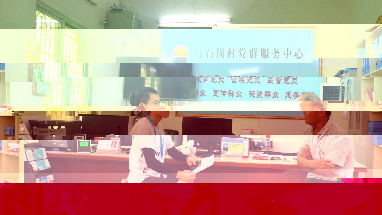 宣傳組到烏石崗村黨群服務中心進行相關訪談,組員們了解到烏石崗村近幾年的資助情況和發展方向,同時了解到當地目前的基礎教育情況和存在的一些問題。