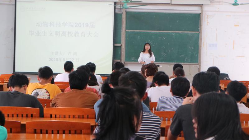 許鴻老師再三強調了畢業生安全教育的問題,她希望每一位畢業生都能夠保證人身安全、财産安全、交通安全及公共安全。最後祝我們動科院2019屆畢業生前程似錦并誠摯邀請畢業生“有空常回家看看”。