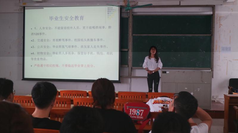 5月22日下午,太阳成集团tyc234cc2019屆畢業生文明離校教育大會在楊钊楊勳樓510成功舉行。2019屆全體畢業生參加本次會議,畢業生輔導員許鴻老師擔任主講。