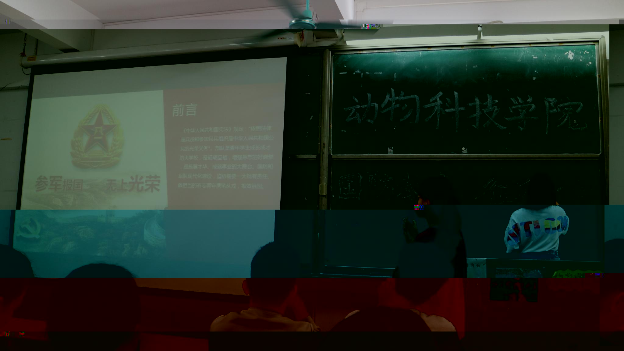 此次國防教育活動分為退位軍人分享大會和征兵宣傳兩個内容。動科172班岑運靖與同學們分享他兩年軍旅生活的收獲。在部隊的兩年時間裡訓練裡學會了認真與堅持,學會了微笑面對困難,學會了韶華易逝、莫負流年。他表示自己軍旅無悔,如果有第二次機會依然會選擇報效祖國。