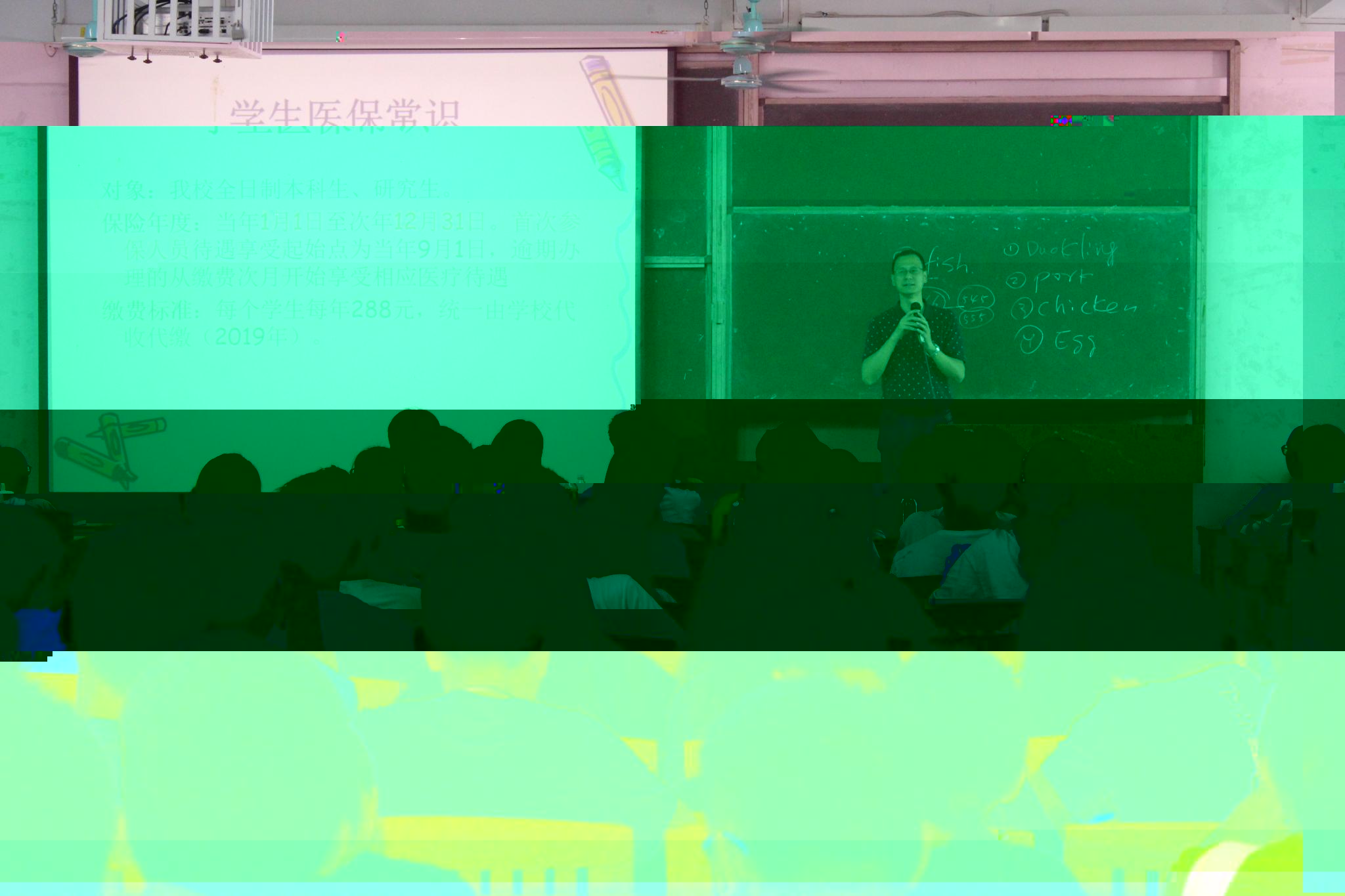 随後,劉院長為各位新生介紹了如何預防傳染病以及保證生理健康的重要性,生動講授了一些危害較大、校園常見的傳染病如登革熱、肺結核、艾滋病等的基礎知識、傳播途徑、常見症狀和預防措施。
