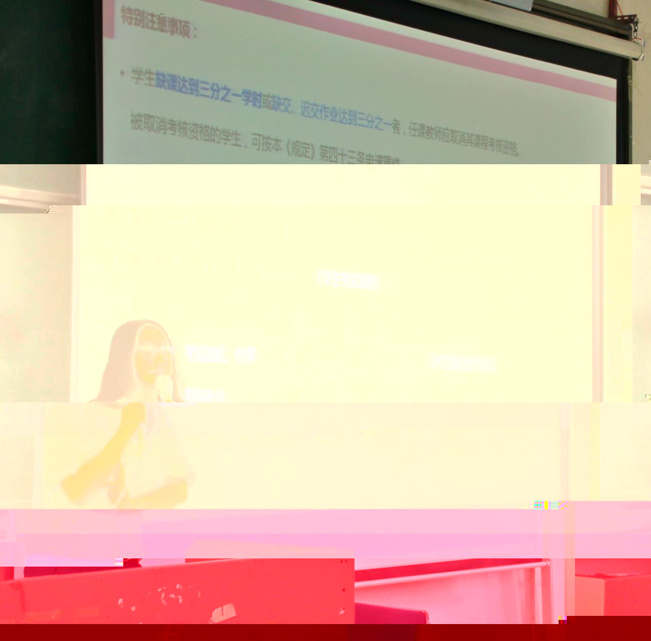 首先,麥老師簡單地介紹了學校網址、教務處及教務管理系統相關網址,引導新生們學會如何使用教務網系統查找教學安排、考試安排、學生成績、網上選課等教學信息。緊接着,麥老師詳細地為新生們講解了關于課程正選、補選、退選,考試緩考、補考、重修和修學分、學業警告、延長學習年限、退學的相關問題。她還特别強調學生缺課,遲交作業,考試違紀、作弊會受到相應處分等問題,并提醒新生認真閱讀《學生手冊》,遵守好各項規章制度。