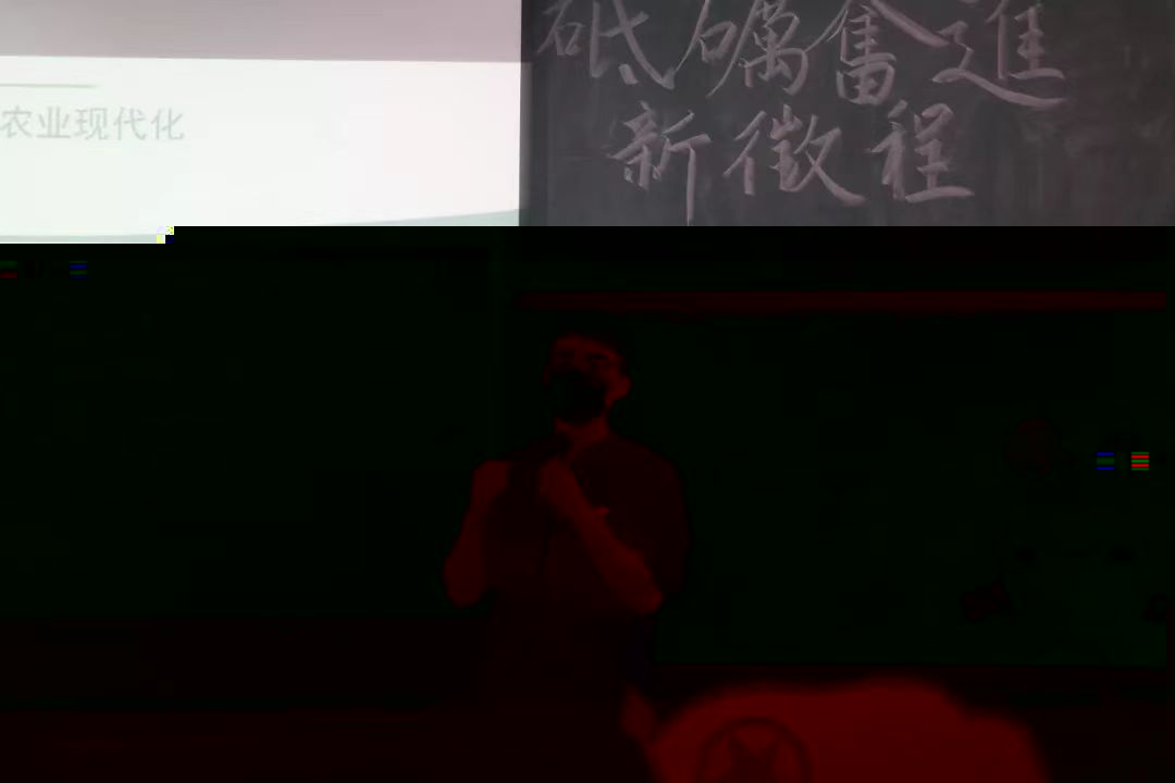 趙江以中國農業現代化史為題,從農業現代化的各國模式及中國政策切入,通過将美國、歐洲、日本和中國的農業發展模式進行詳細的類比說明,以圖、文、視頻的綜合形式向同學們從傳統農業、化肥發展、農業機械發展和中國種業發展四個方面詳細的介紹了中國農業現代化的發展曆史。随後趙江就農業發展問題,如各領域還未深度合作,農業科技相對重視不夠,研究成果落地轉化效率慢等為同學們進行介紹講解。最後趙江鼓勵同學們要做“一懂雙愛”的農業人才,為祖國的糧食安全、鄉村的振興和農業技術的完善做出貢獻;牢固樹立“三農意識”,投身到鄉村建設的使命當中,勇擔重任,實現價值;強調作為農科學子,更要不忘初心,志存高遠,勤奮刻苦,學好本領,積極為民族和國家的事業發展奉獻青春力量。