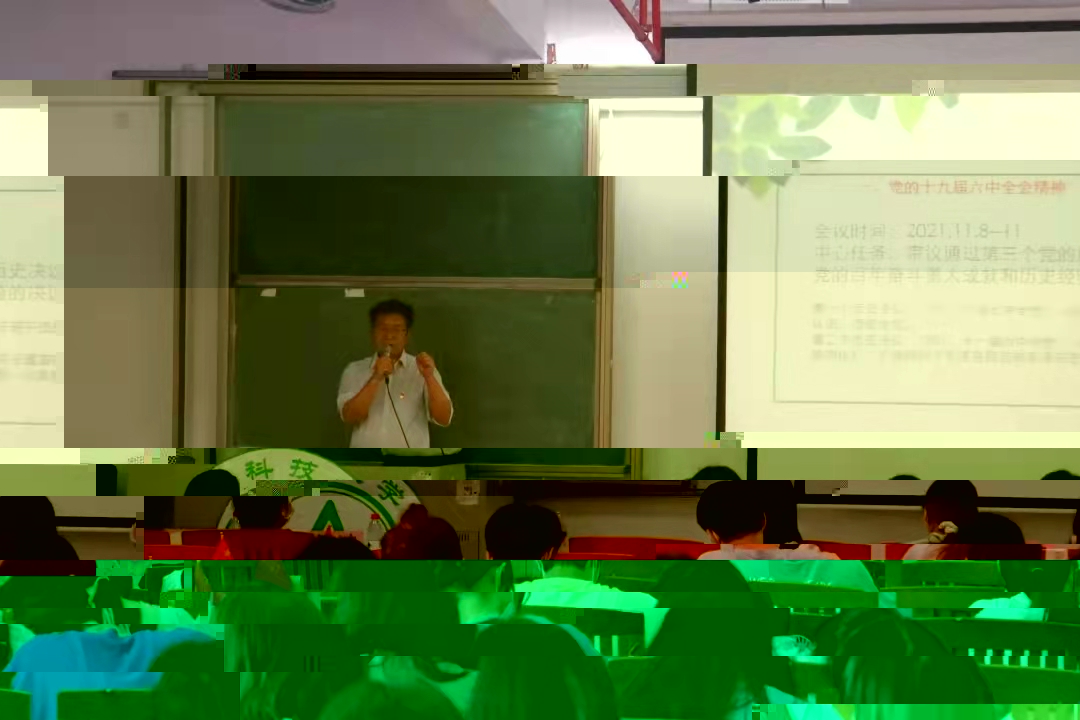 課堂上,歐堅泉書記以《做習近平新時代中國特色社會主義思想的堅定信仰者和忠實實踐者》為題,梳理和解讀了十九屆六中全會精神,他從習近平新時代中國特色社會主義思想及共産黨發展的四個階段,诠釋了黨百年奮鬥的初心使命、重大成就和奮鬥經驗。他強調,要把黨史學習的成果轉化為改造主觀世界和客觀世界的實際行動,從思想上、理論上、情感上、實踐上認同習近平新時代中國特色社會主義思想。一是做習近平新時代中國特色社會主義思想的堅定信仰者和忠實實踐者。二是立德修身,做德智體美勞全面發展的優秀大學生。三是學好專業,投身鄉村振興,為中華民族的偉大複興做出應有的貢獻。四是黨員同志要帶頭遵守校園疫情防控的要求,做好疫情防控,守住校園疫情防控底線。