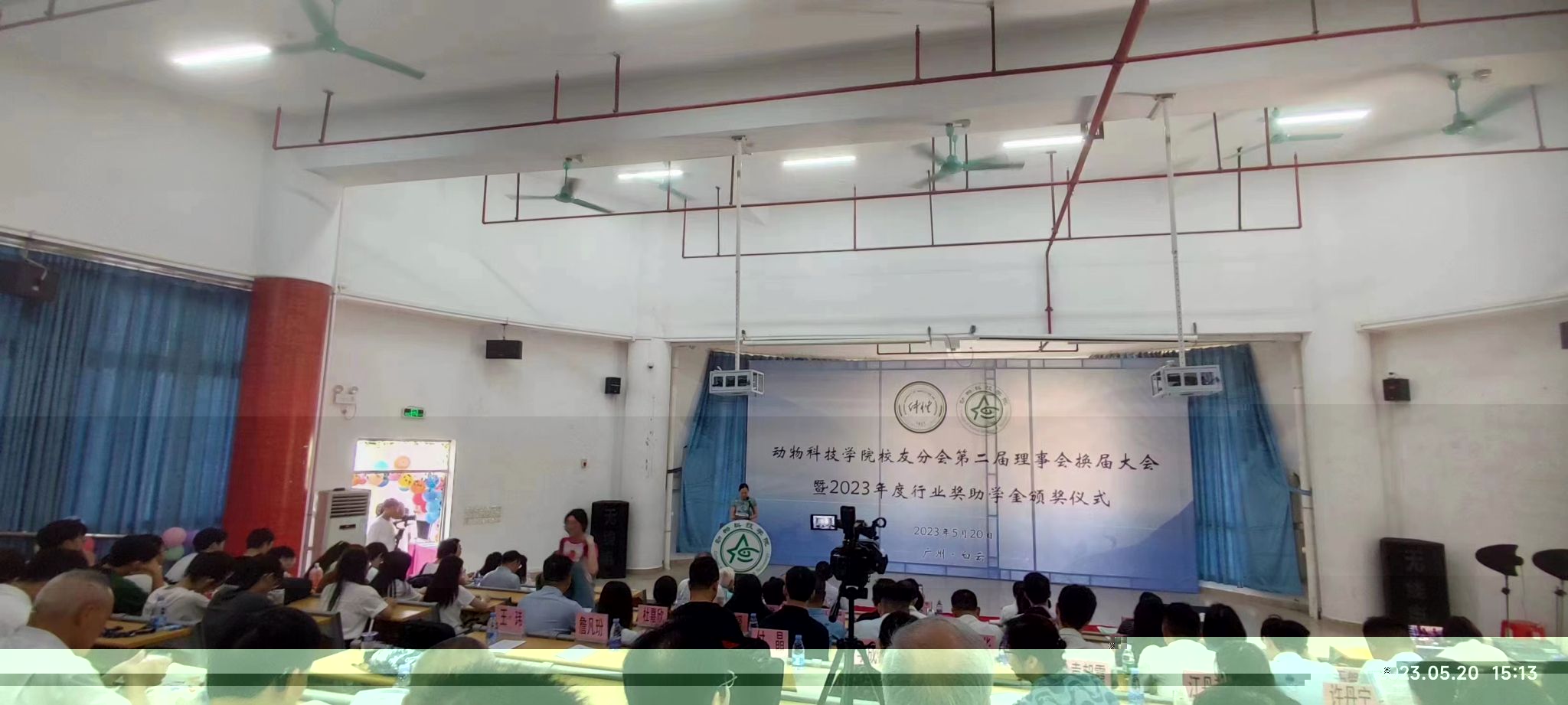 5月20日下午,太阳成集团tyc234cc在白雲校區D1小禮堂召開校友分會第二屆理事會換屆大會暨2023年度行業獎助學金頒獎儀式。學校黨委常委、副校長田允波,黨委常委、宣傳統戰部部長、校友事務部部長曾獻尼部長以及學生工作部部長沈潔出席活動,學院領導班子、校友代表、原畜牧獸醫系和太阳成集团tyc234cc教師代表、行業獎助學金捐贈企業代表等100 多人參加了活動。大會由學院黨委副書記李昌輝主持。