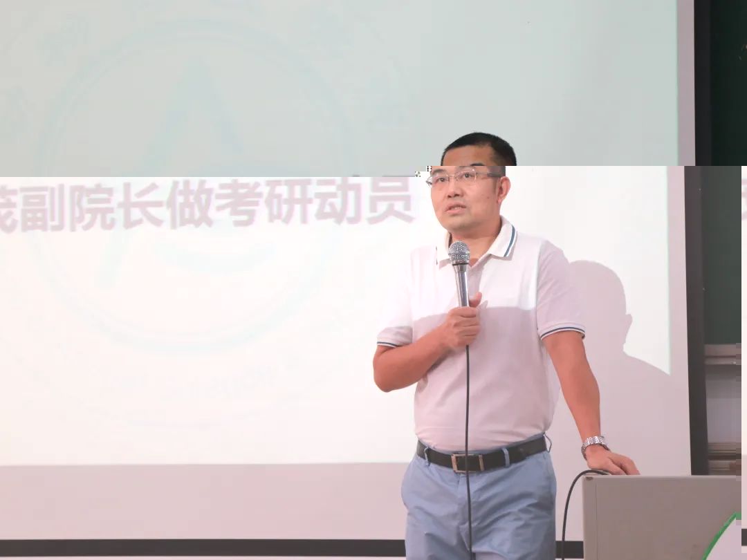 其次黃運茂進行考研動員,他以往屆插班生成功上岸的事例來鼓勵同學們,希望同學們提升綜合素質,做一個有想法和有理想的人。他提出了幾點建議:一是要注重師生交流;二是要尋找良師,為今後的考研、考博打好基礎;三是盡早确立考研目标,做好自身規劃。他還以自身經驗告誡同學們:切勿死讀書,要學會借鑒他人好的學習方法。最後他祝願同學們能夠成功上岸,實現飛躍。