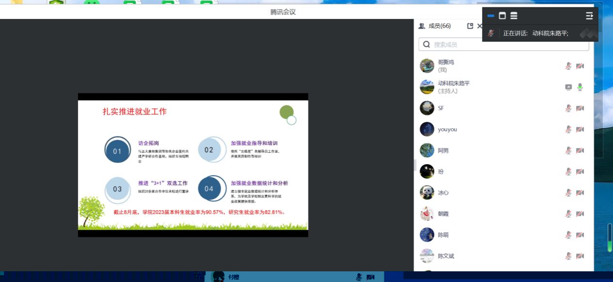 會上,朱路平結合學校規劃目标和工作重點,對學院上半年各項工作進行了回顧和總結,梳理介紹了學院下半年的工作重點,并就做好新學期工作提出了要求。她指出學院的發展壯大離不開全體教職工共同努力,鼓勵全體教職工以主題教育生動成效促進工作提升,将個人職業發展與學校發展相結合,凝心聚力為實現學校“申博”“更名”“十四五”規劃美好藍圖貢獻動科力量。